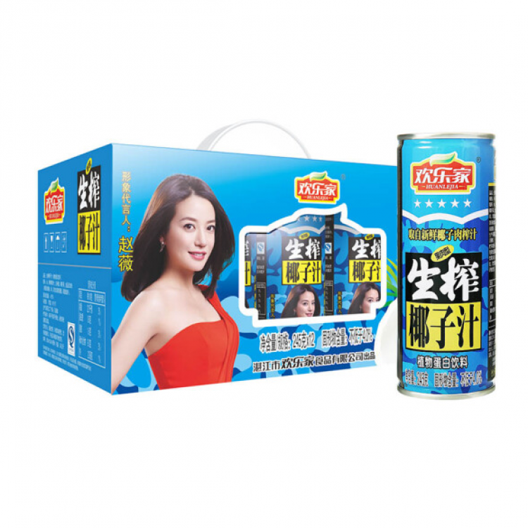 欢乐家 生榨椰子汁 果肉果汁饮料 245ml*12罐 礼盒整箱装