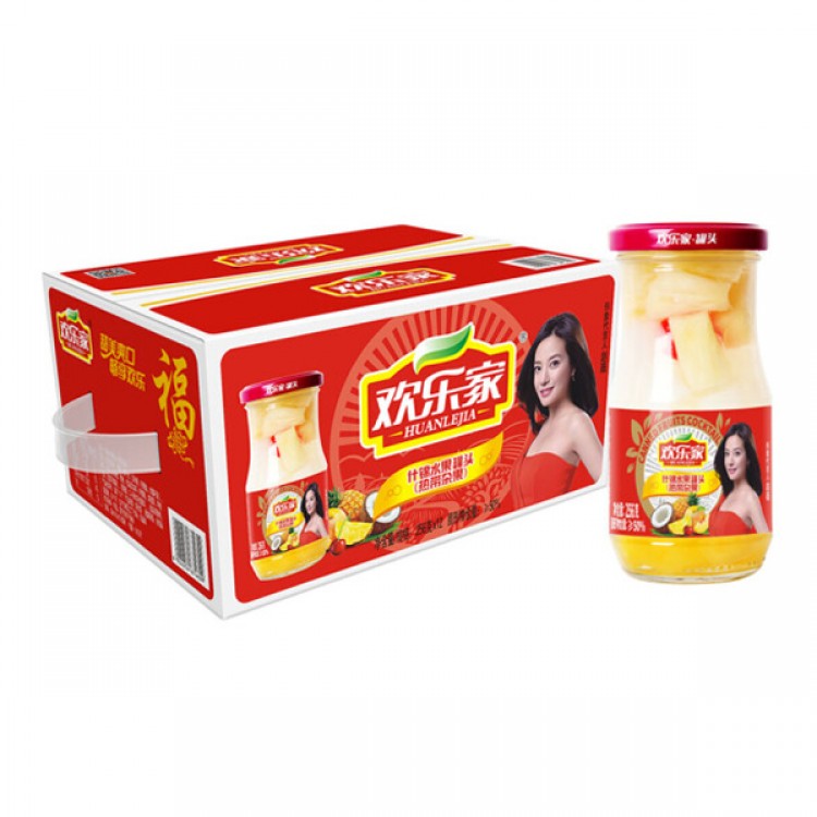 欢乐家 杂果什锦新鲜糖水混合水果罐头256g*12瓶 整箱装