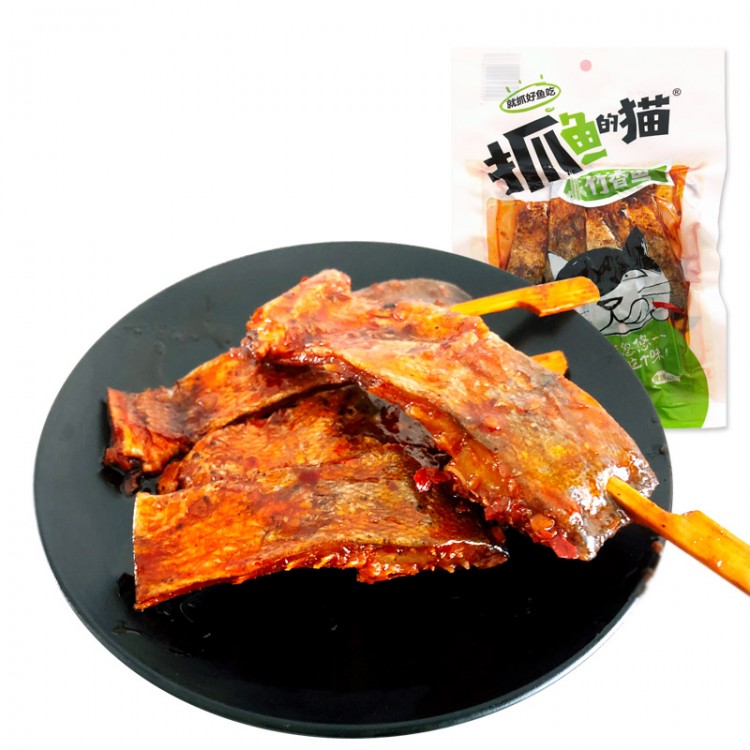 抓鱼的猫 竹香鱼 80g/包 竹签鱼排 麻辣鱼排白鲢鱼 即食休闲小吃零食