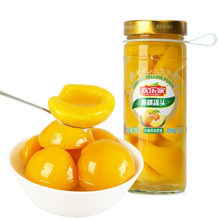欢乐家 黄桃罐头460g/1瓶 方便速食糖水新鲜水果大玻璃瓶休闲零食品 黄桃罐头