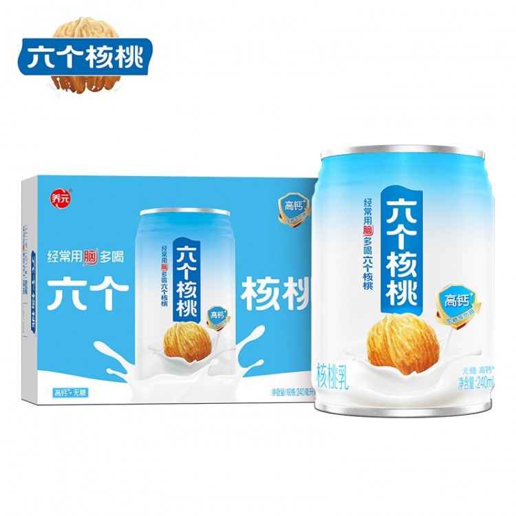 六个核桃 无糖高钙核桃乳 240ml*12罐 养元 整箱装植物蛋白饮料整箱装