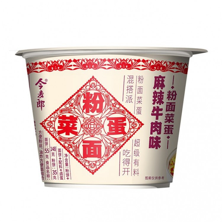 今麦郎方便面 粉面菜蛋 麻辣牛肉味 146g 酸辣粉丝面卤蛋菜四合一桶装泡面