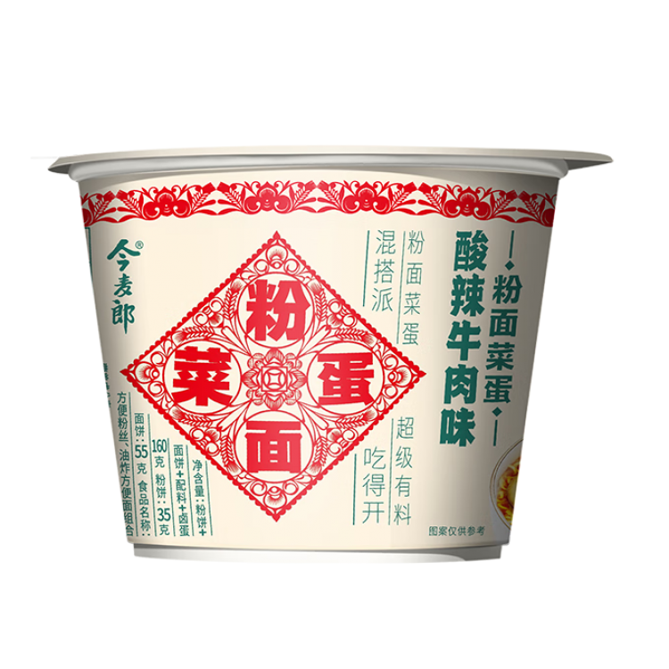 今麦郎粉面菜蛋 酸辣牛肉味 146g 酸辣粉丝面卤蛋菜四合一桶装泡面方便面