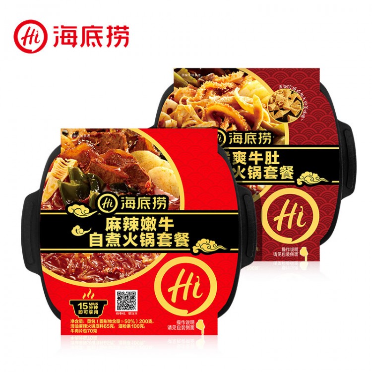 海底捞火锅底料自热式懒人自煮方便火锅 麻辣嫩牛自煮火锅435g+ 脆爽牛肚自煮火锅435g/套