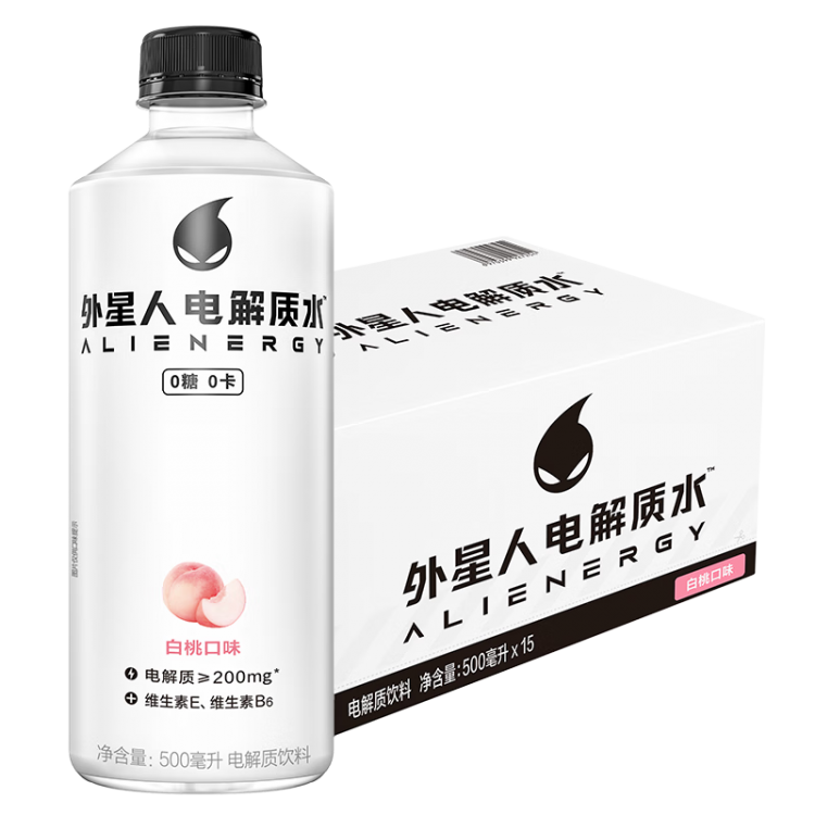 外星人 白桃味电解质水 500ml/15瓶 整箱装 低糖维生素E 电解质饮料饮用水