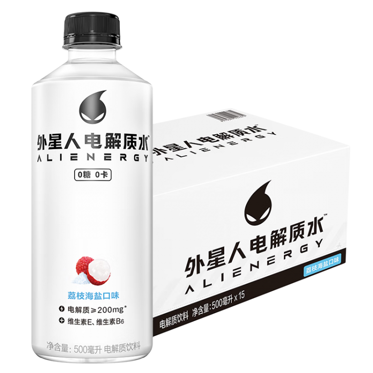 外星人 荔枝海盐味电解质水 500ml/15瓶 整箱装 低糖维生素E 电解质饮料饮用水