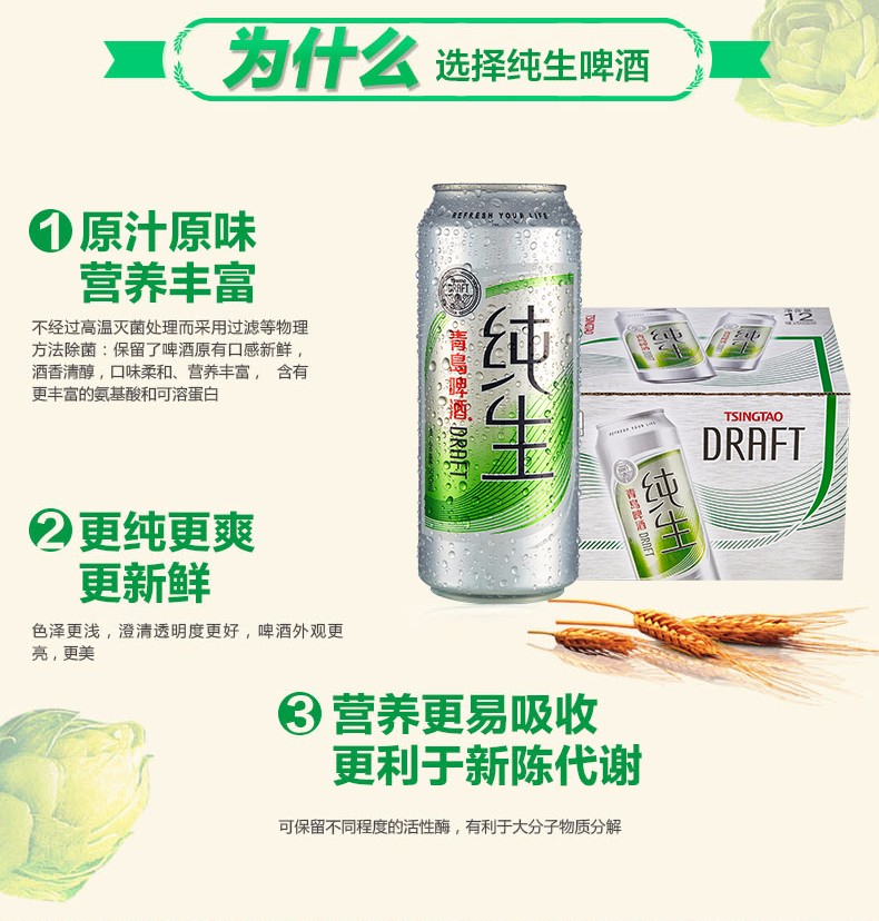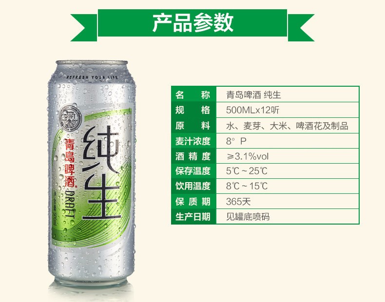 • 青岛啤酒 纯生啤酒500ml/听 生啤