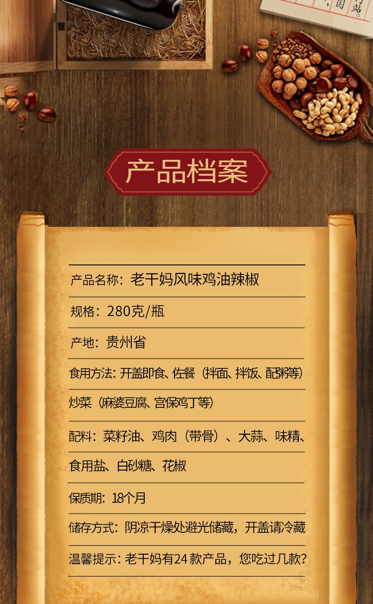 • 老干妈 贵州特产风味鸡油辣椒酱280g 辣子鸡下饭菜