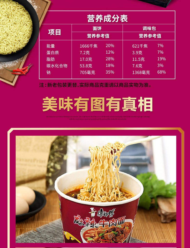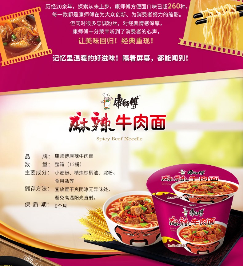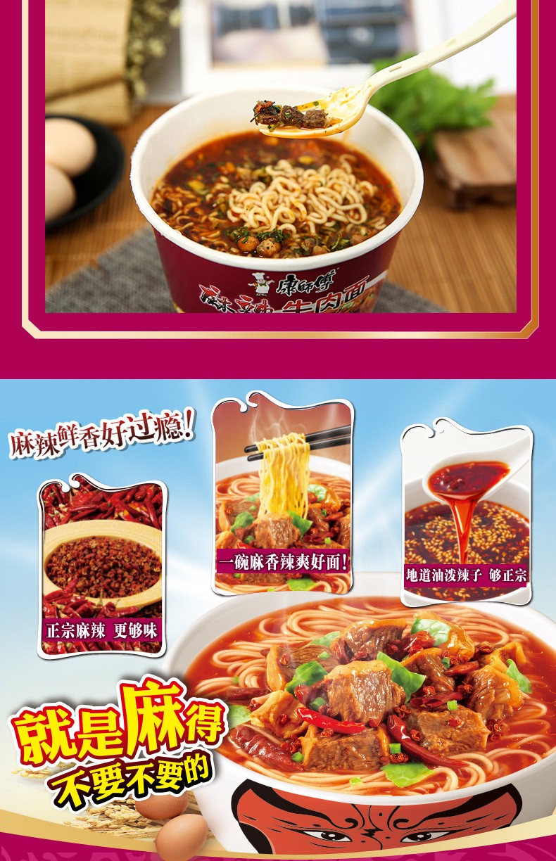 • 康师傅 开心桶麻辣牛肉面 105g/桶 方便面泡面