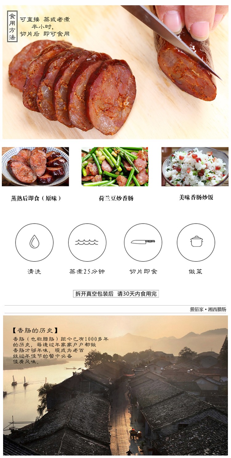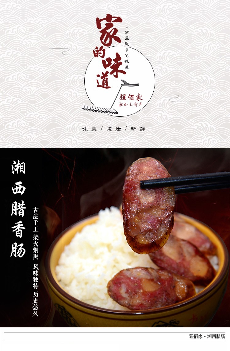 • 腊香肠 湘西特产 纯手工鲜肉灌装 柴火烟熏腊香肠 500g