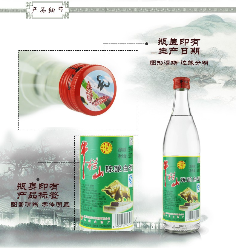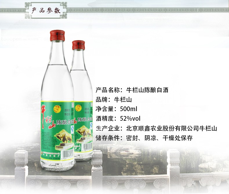 • 牛栏山二锅头 陈酿白牛 52度高度500ml 白酒