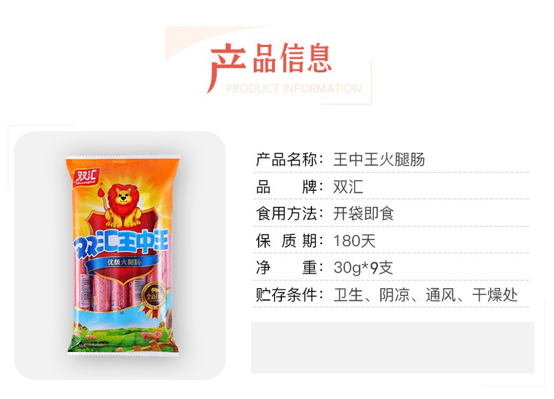 • 双汇火腿肠王中王30g*9支 零食香肠休闲小吃泡面拍档