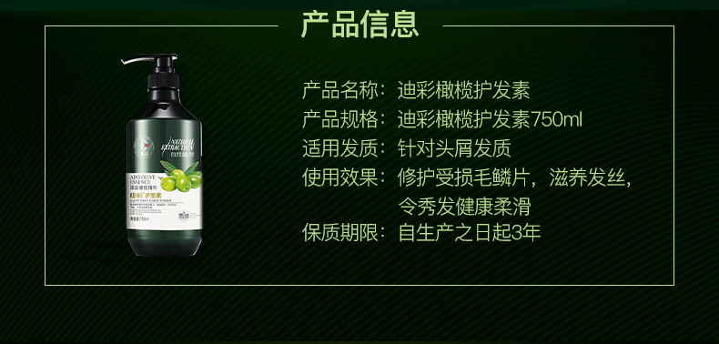 • 迪彩 橄榄护发素修复滋润发丝强健柔顺改善毛躁正品 750ml
