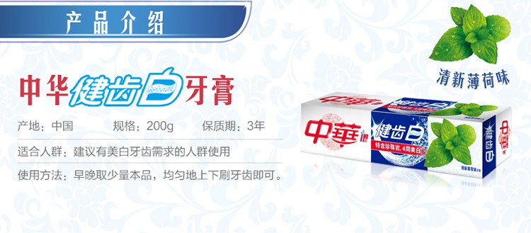 • 中华牙膏 健齿白 清新薄荷牙膏200g