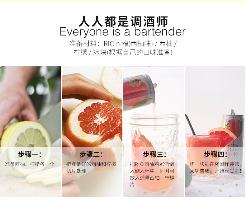 • 锐澳RIO 3.8度紫葡萄白兰地味鸡尾酒 预调酒275ml*1瓶
