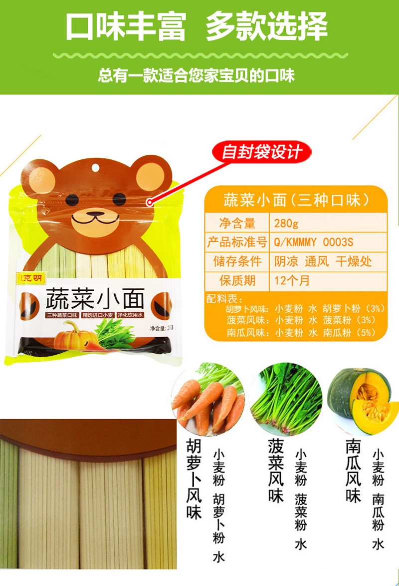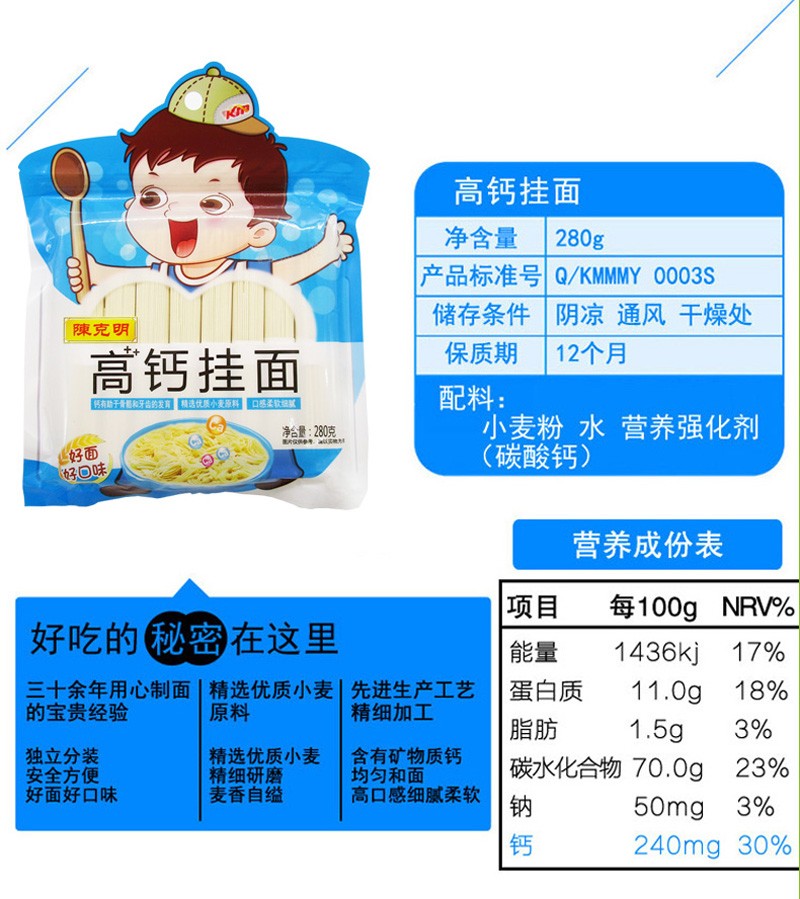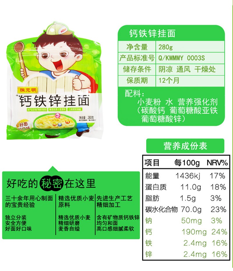 • 陈克明 儿童高钙挂面 幼儿辅食宝宝营养儿童面条 280g