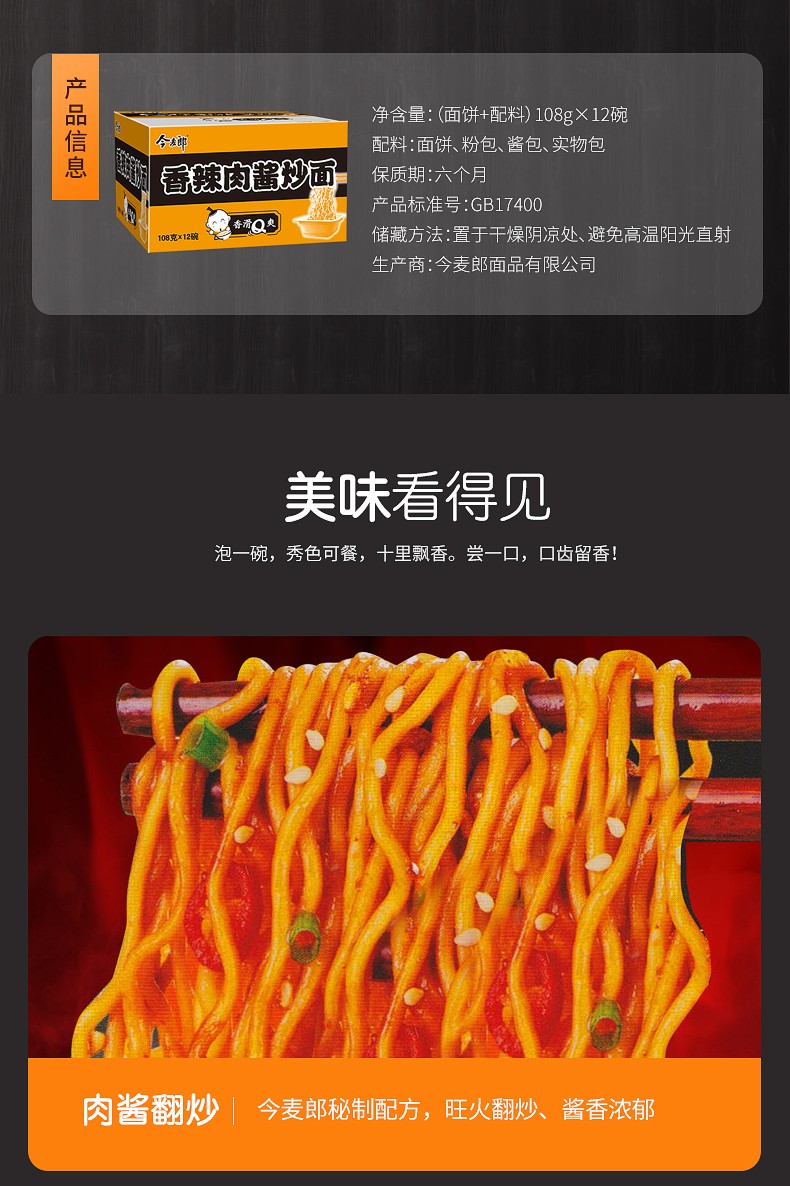 • 今麦郎 方便面 香辣肉酱炒面 干拌面108g 泡面 桶面