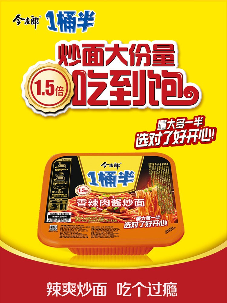 • 今麦郎 香辣肉酱炒面 一桶半系列 麻辣干拌面 146g