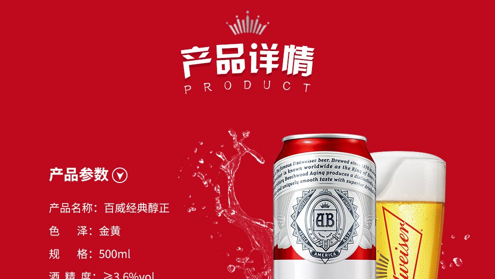 • 百威啤酒 清啤黄啤经典款 听装 500ml