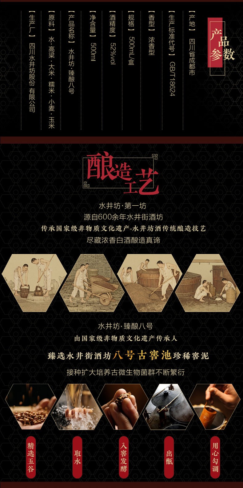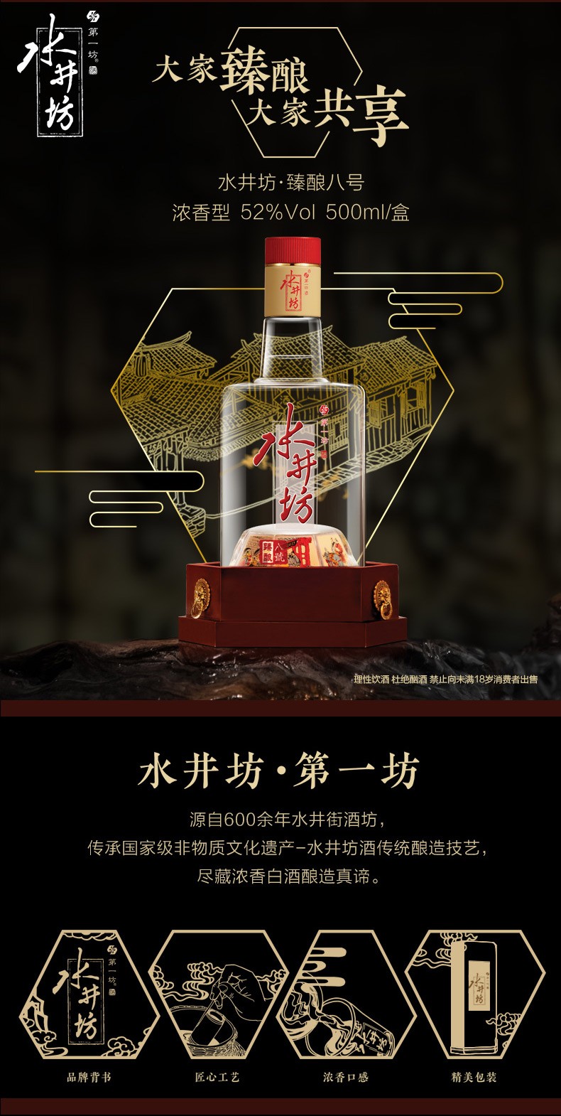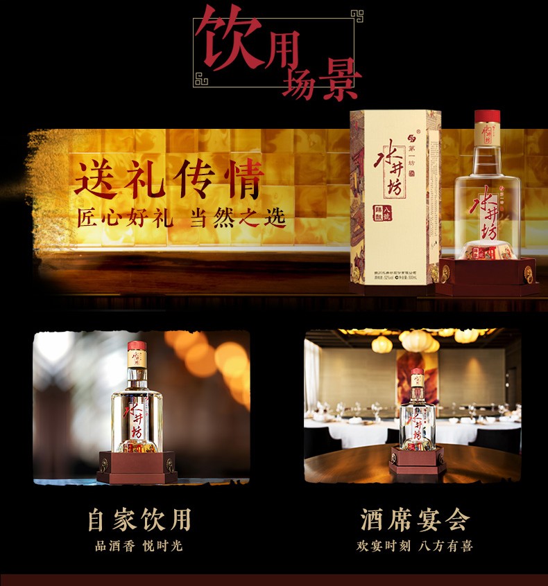 • 水井坊 臻酿八号 52度500ml 浓香型白酒 单瓶装(2瓶起购配礼袋)