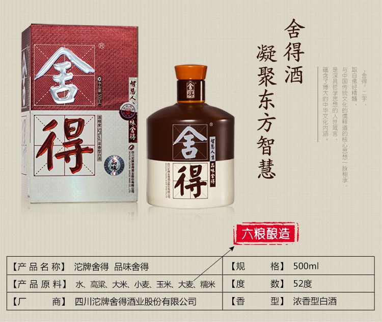 • 沱牌舍得 品味舍得 浓香型白酒 52度 500ml单瓶装