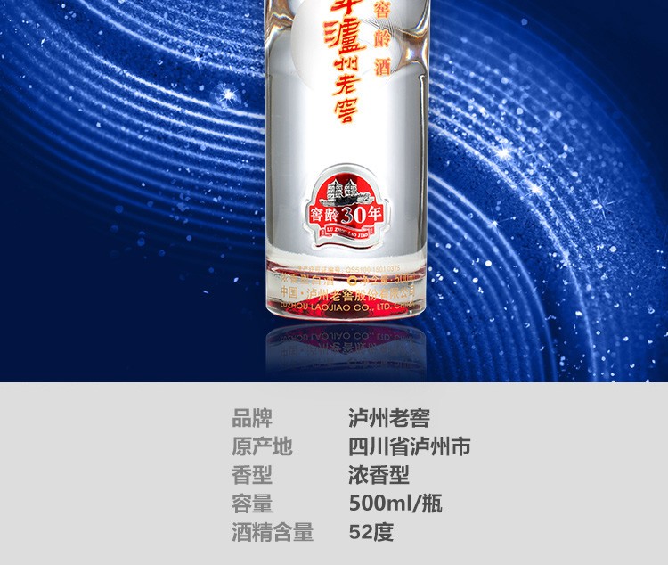 • 泸州老窖 窖龄30年 52度 浓香型白酒 500ml