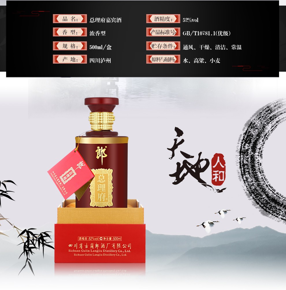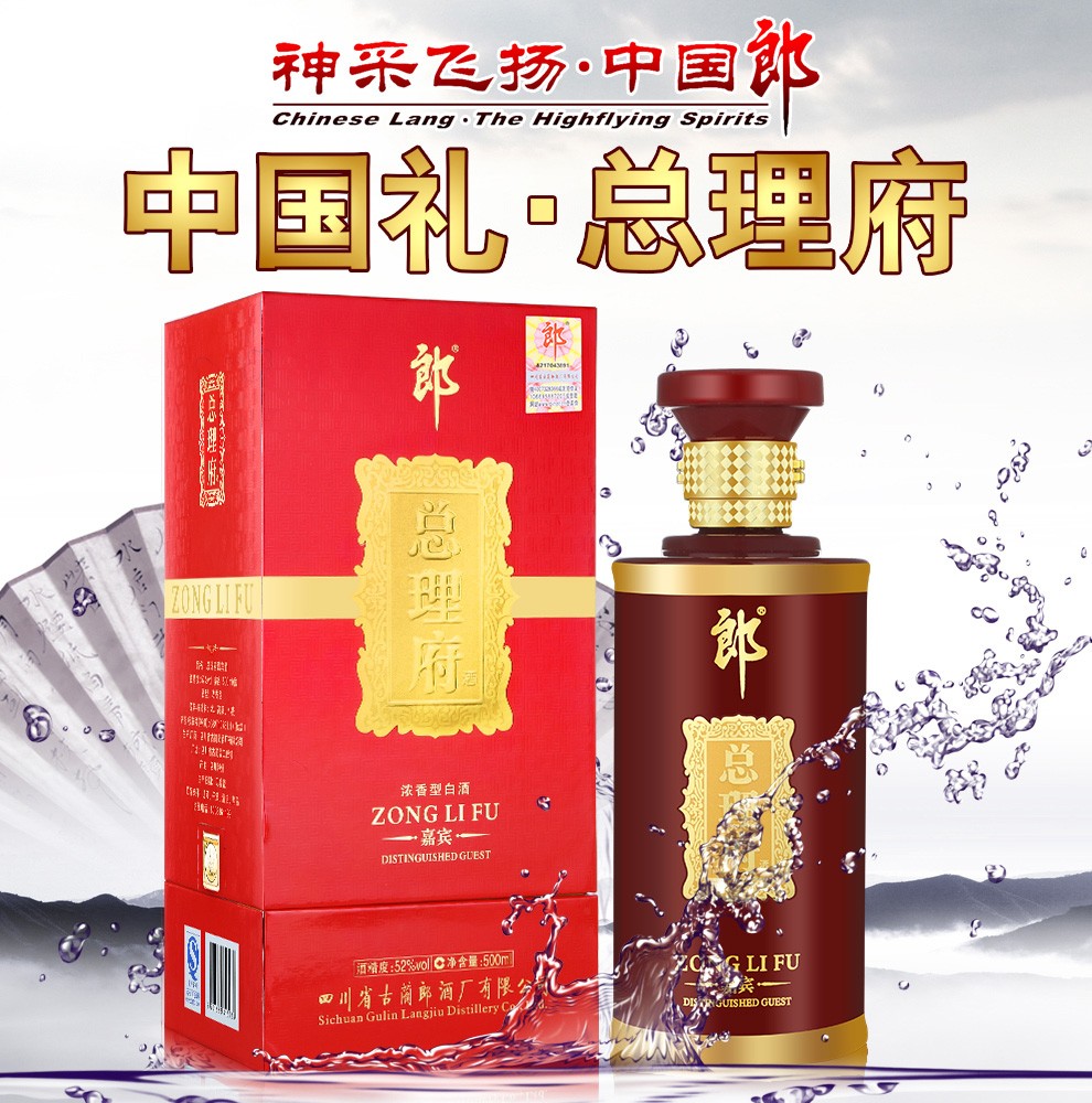 • 郎酒 总理府嘉宾酒 52度 浓香型礼盒酒 500ml 单瓶装