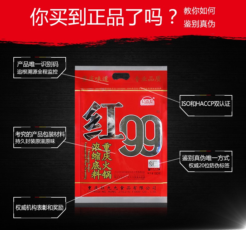 • 红99 重庆红九九 150g 精品牛油正宗火锅底料 调味料