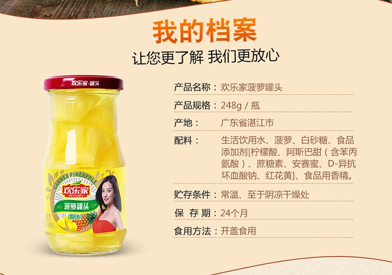 • 欢乐家 菠萝罐头 256g/瓶 休闲零食 水果罐头