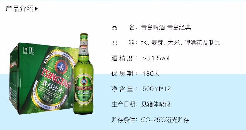• 青岛啤酒 经典 国产啤酒 500ml*12瓶 整箱装