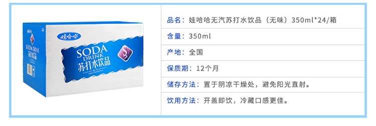 • 娃哈哈 无汽苏打水饮料 350ml/瓶 弱碱性