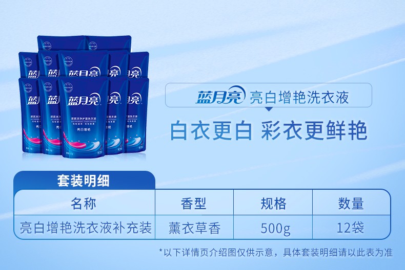 • 蓝月亮 薰衣草香 亮白增艳洗衣液 500g/袋 官方正品