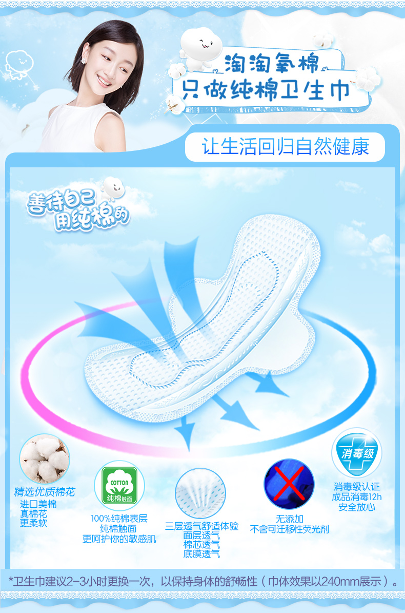 • 淘淘氧棉 纯棉触面 清爽型日用卫生巾 240mm/10片