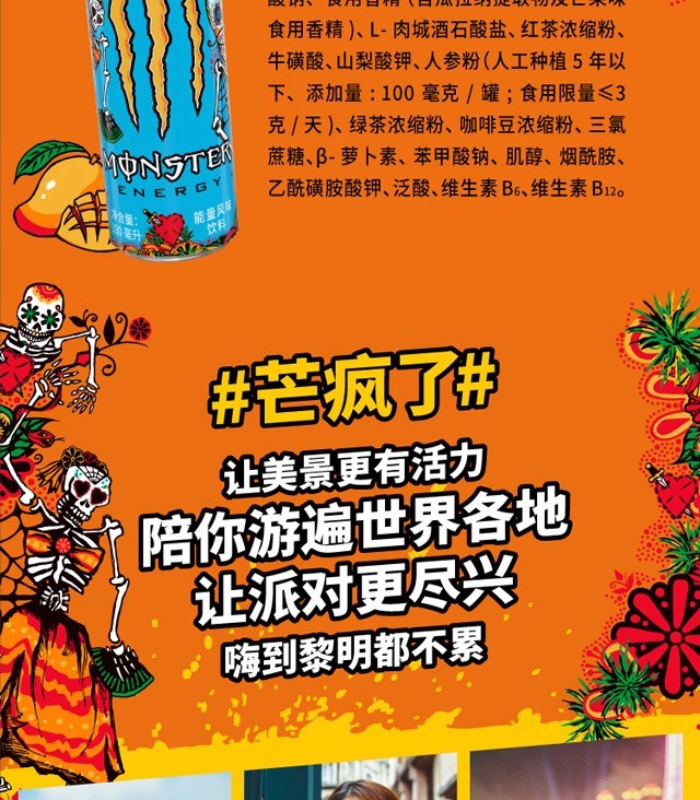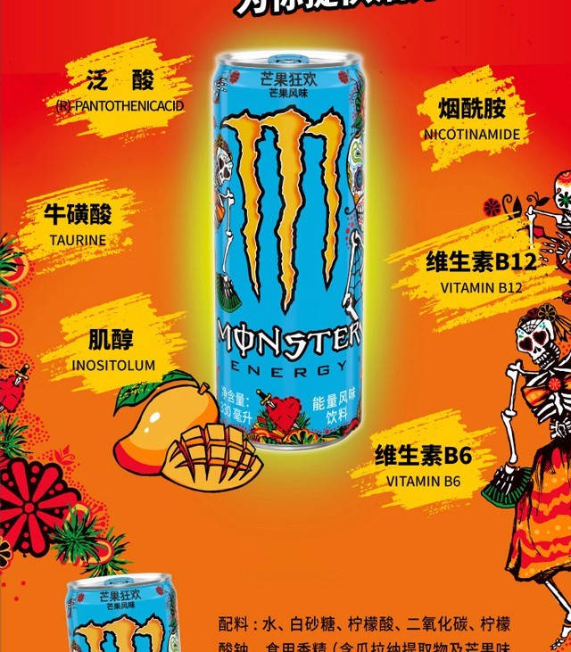 • 可口可乐 芒果味蓝魔爪 能量型 维生素运动饮料 蓝罐330ml/罐