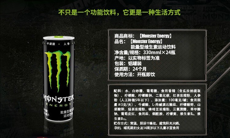 • 可口可乐 黑魔爪饮料 能量型维生素运动饮品330ml/24罐 黑罐魔爪