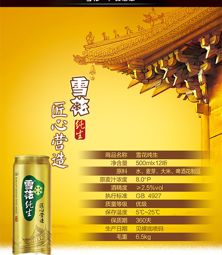 • 雪花啤酒 8度纯生 500ml*12听 整箱装