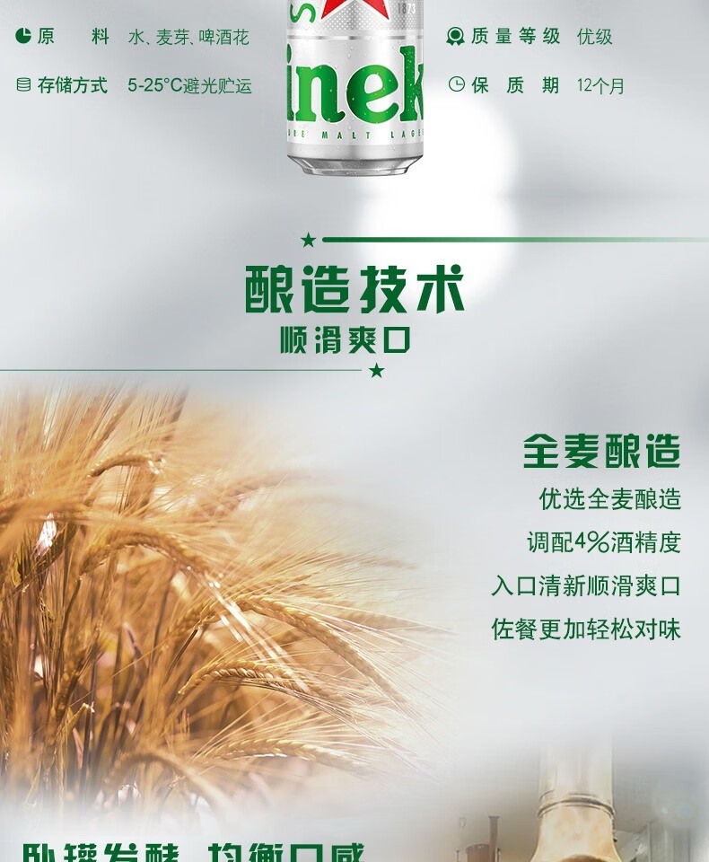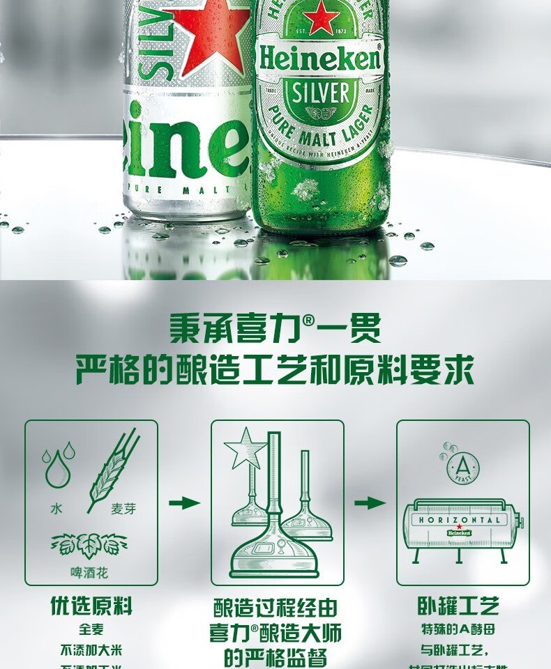 • 喜力Heineken 星银拉罐啤酒 500ml/罐