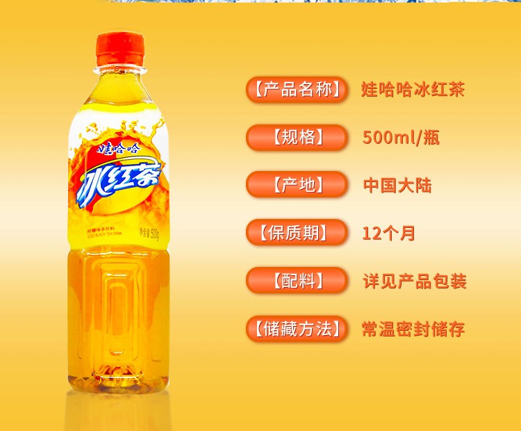 • 娃哈哈 冰红茶 500ml*15瓶/箱 柠檬味茶饮料