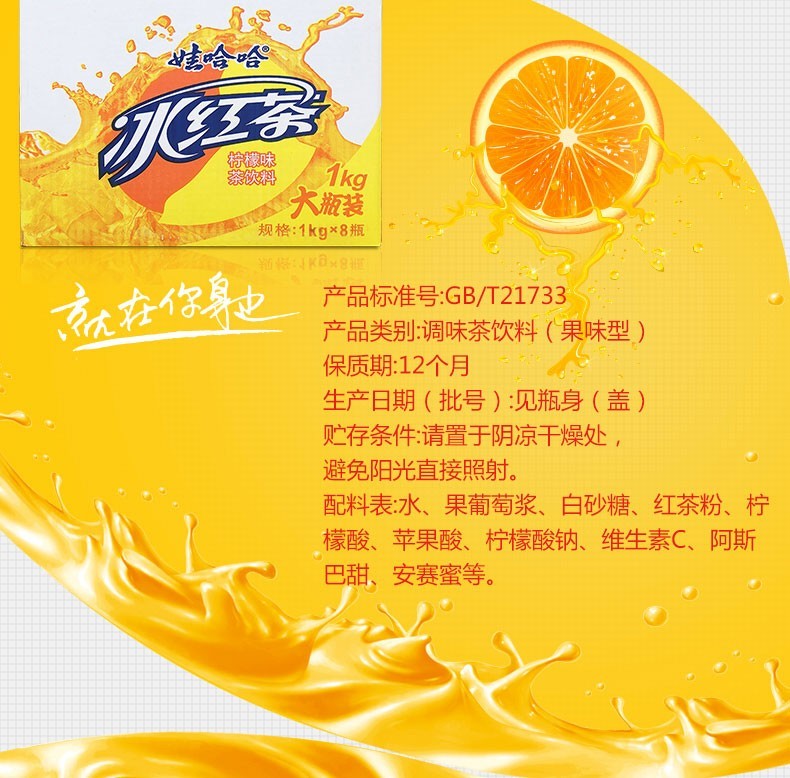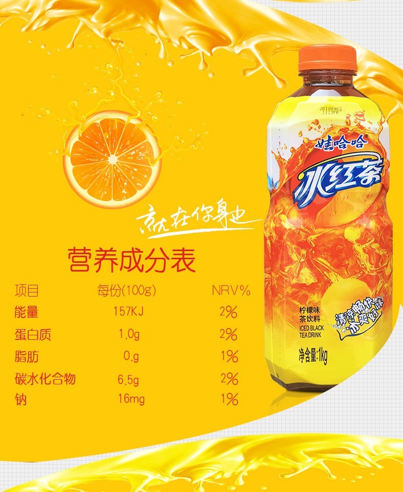 • 娃哈哈 冰红茶1L/1瓶 柠檬味茶饮料
