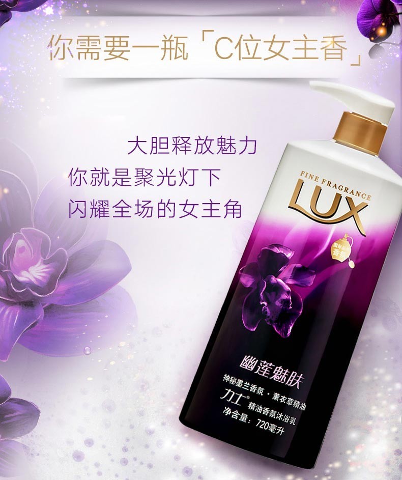 • LUX力士 幽莲魅肤 沐浴乳 1L/瓶 墨兰香氛薰衣草精油沐浴露