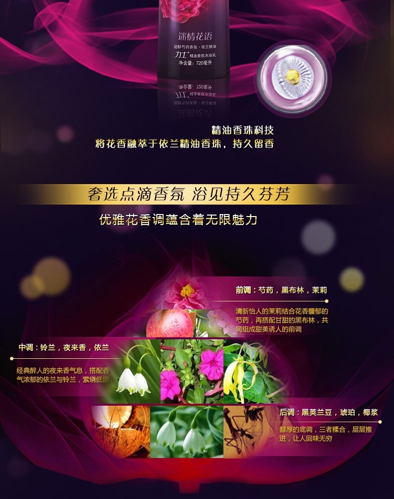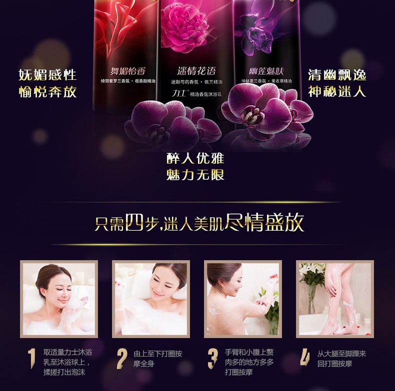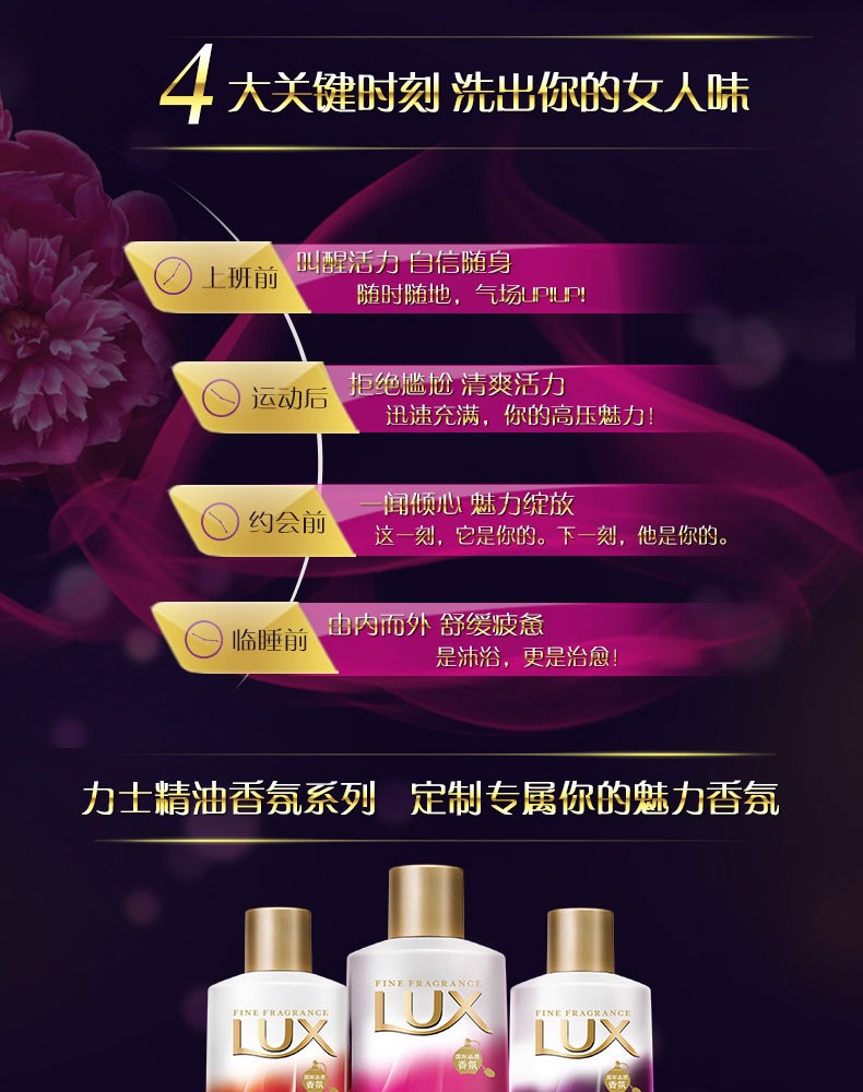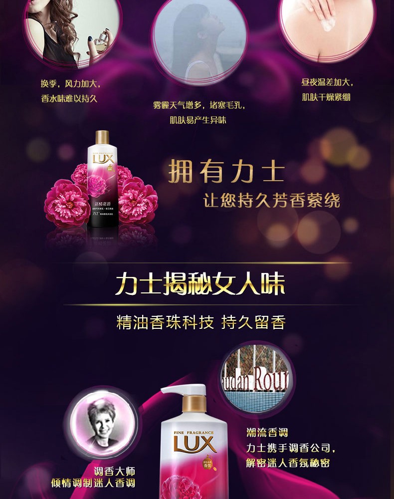 • LUX力士 迷情花语 沐浴乳 720ml/瓶 墨兰香氛薰衣草精油沐浴露