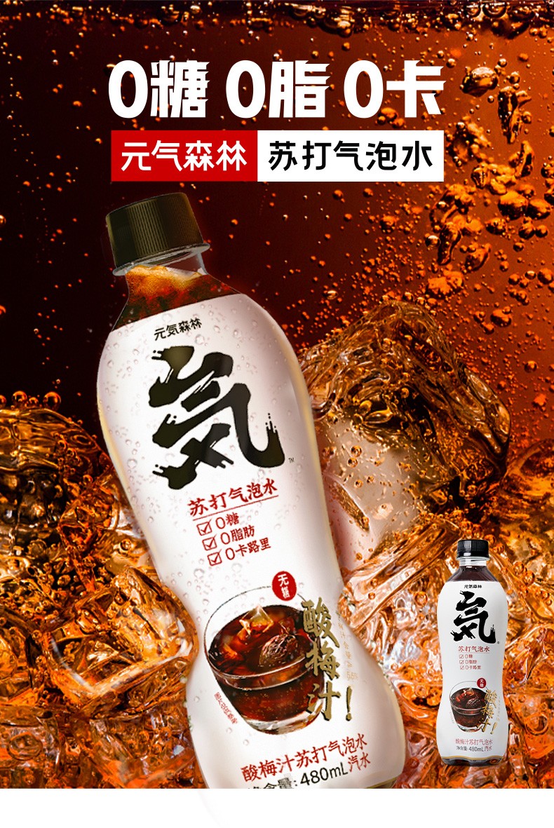 • 元气森林 酸梅汁 480ml/瓶 无糖元气水气泡水 汽水饮料  元気森林