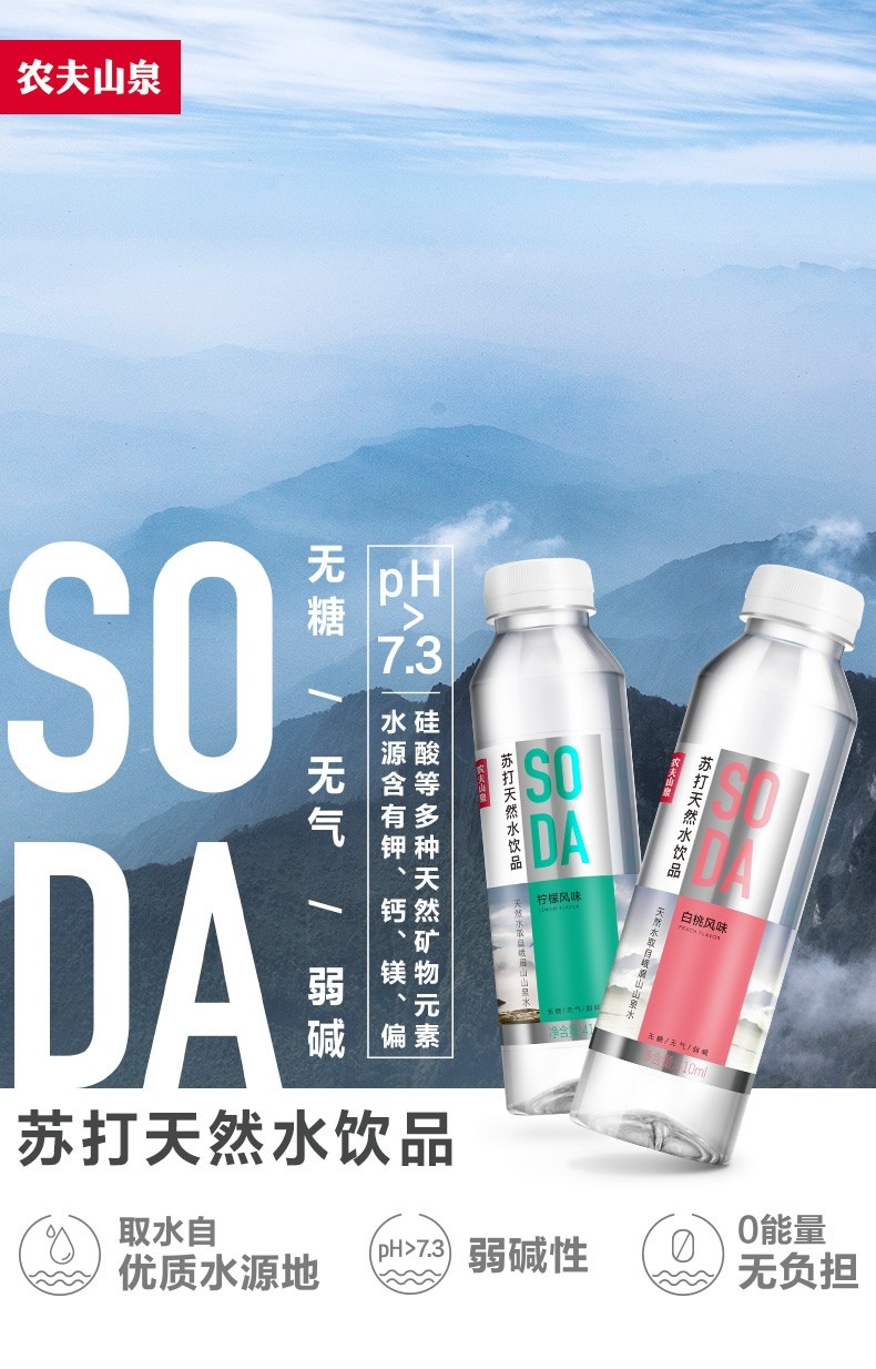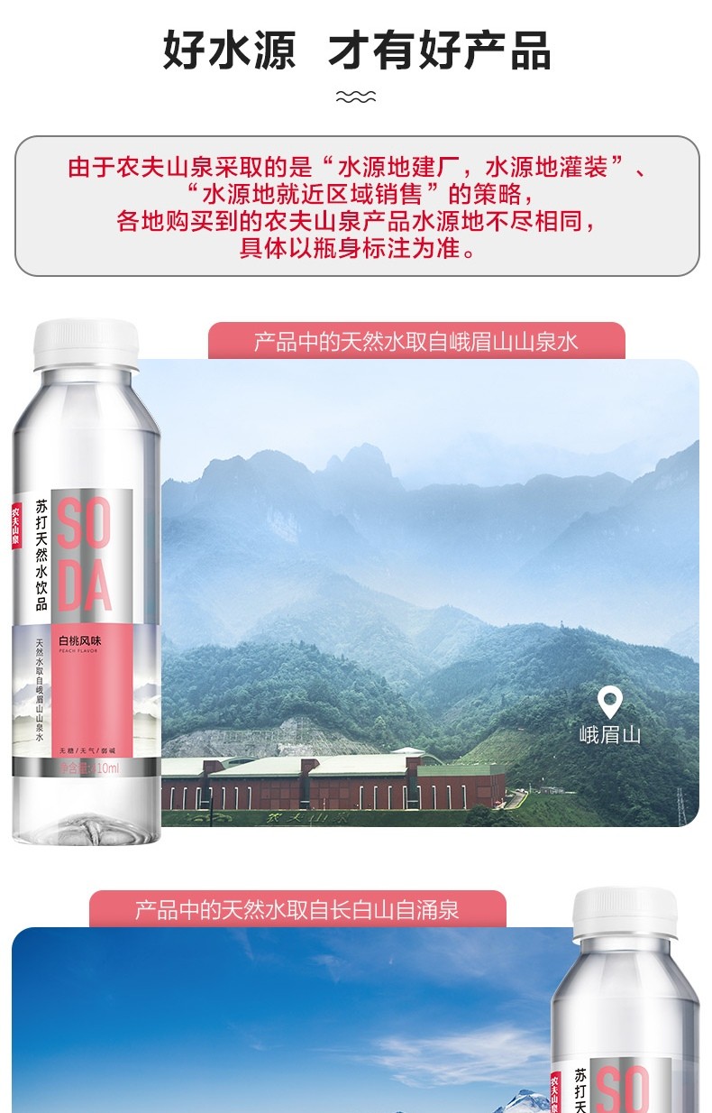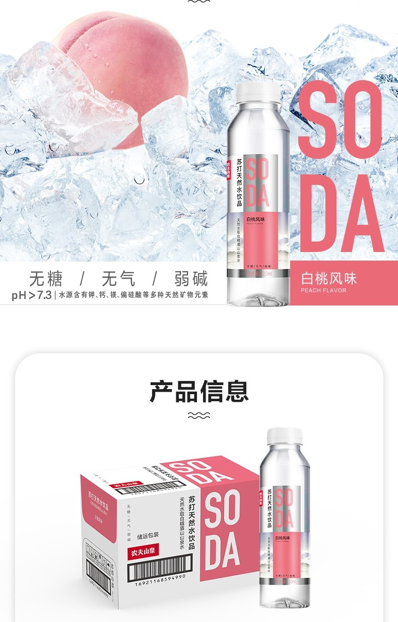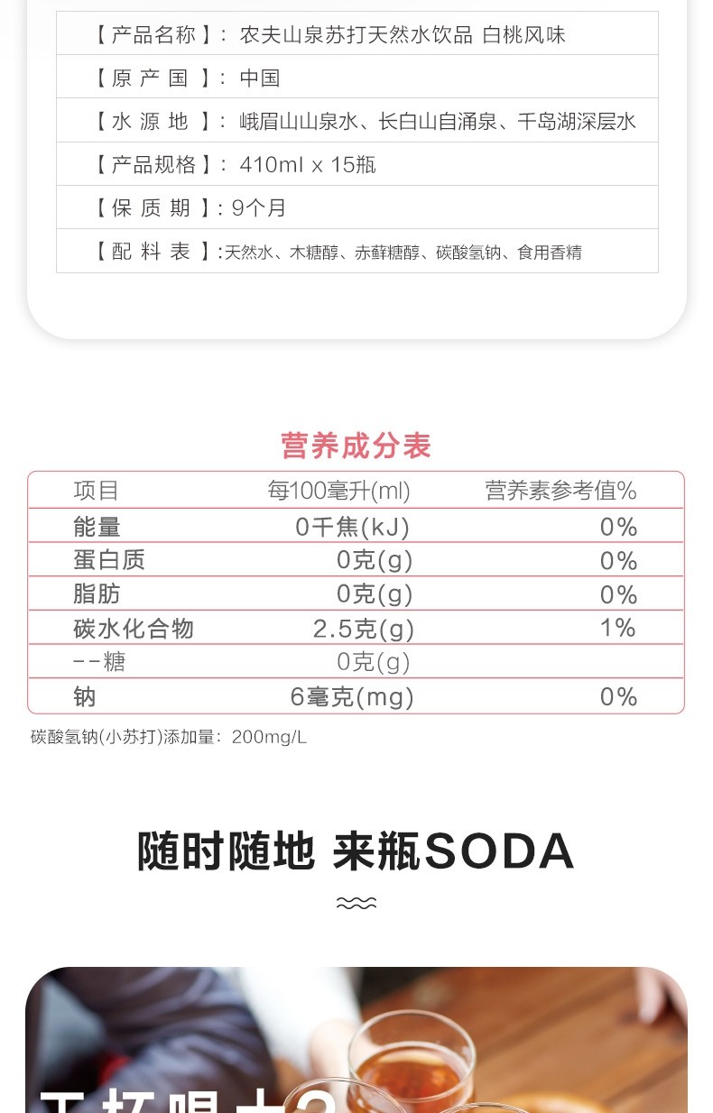 • 农夫山泉 苏打水天然饮品 白桃味 410ml*15瓶 整箱装