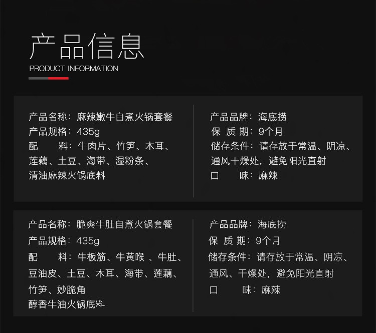 • 海底捞火锅底料自热式懒人自煮方便火锅 麻辣嫩牛自煮火锅435g+ 脆爽牛肚自煮火锅435g/套