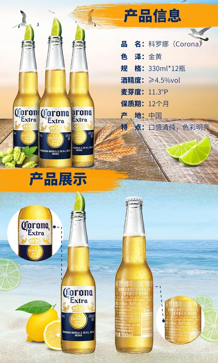 • 科罗娜 墨西哥进口风味 拉格特级啤酒 330ml/瓶