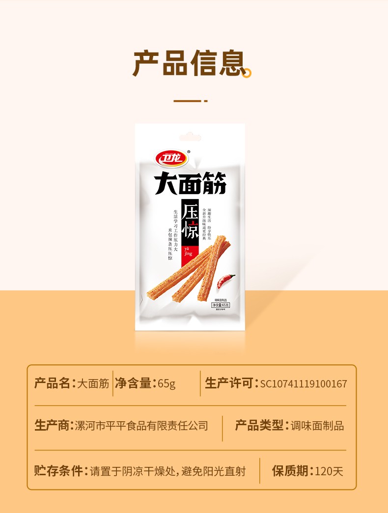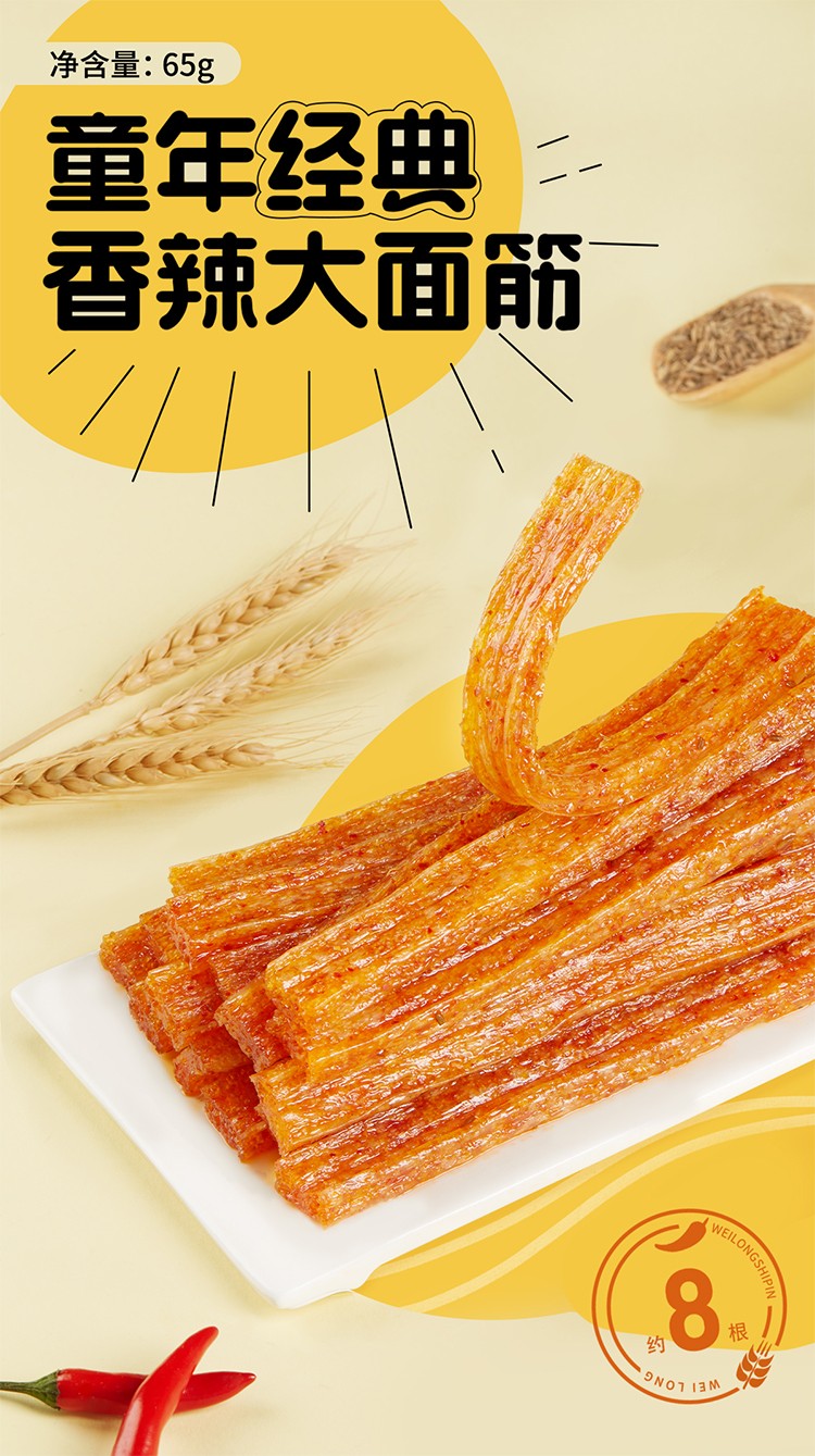 • 卫龙大面筋 65g/包 卫龙辣条零食80后儿时辣片小吃特产