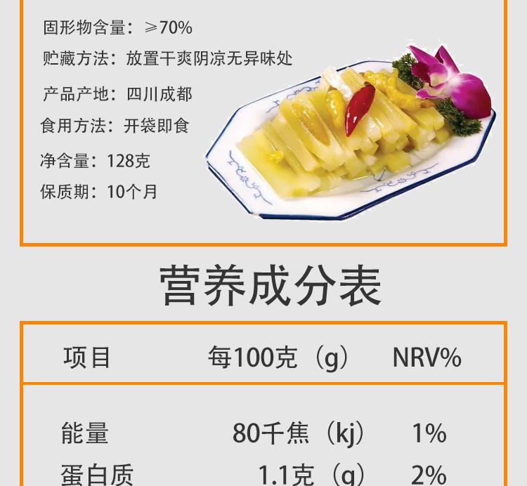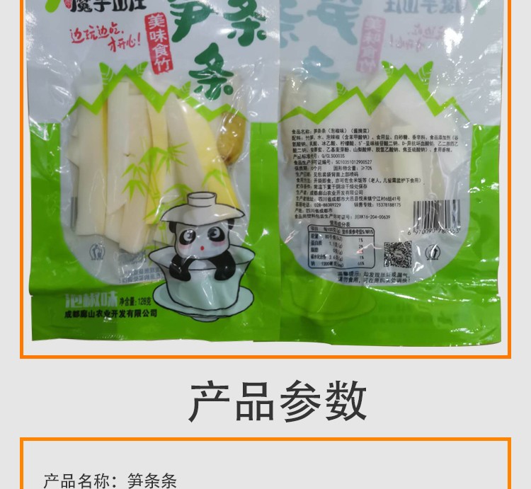 • 魔芋山庄 泡椒竹笋 笋条条128g 新鲜野生笋尖 脆笋下饭菜酱腌菜