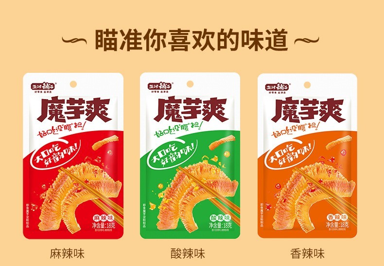 • 盐津铺子 魔芋爽 吗辣味素毛肚 18g 泡椒零食魔芋丝 爽酸辣味