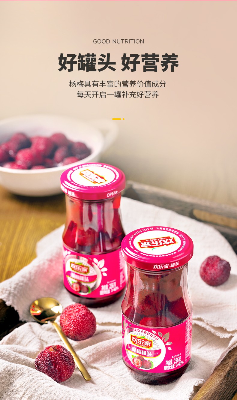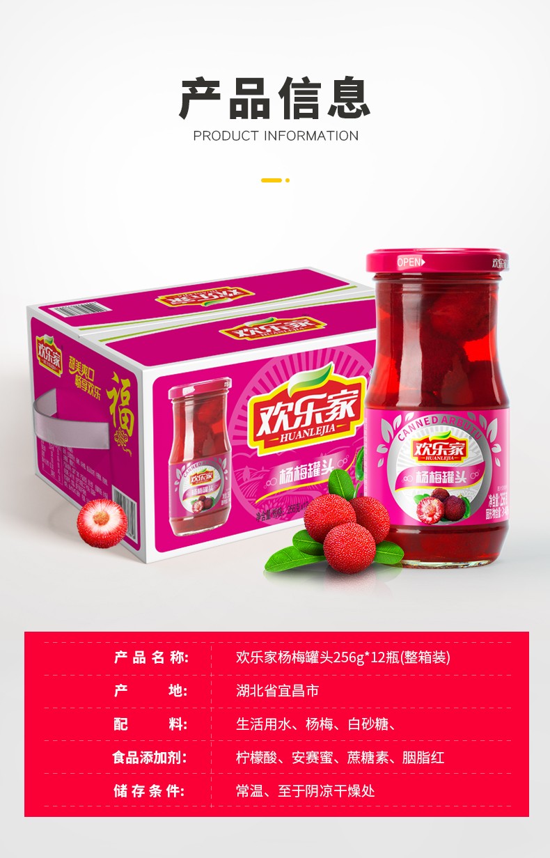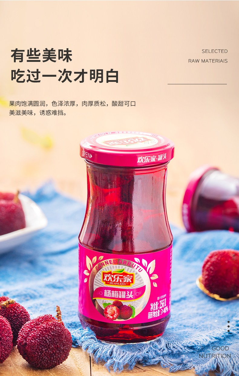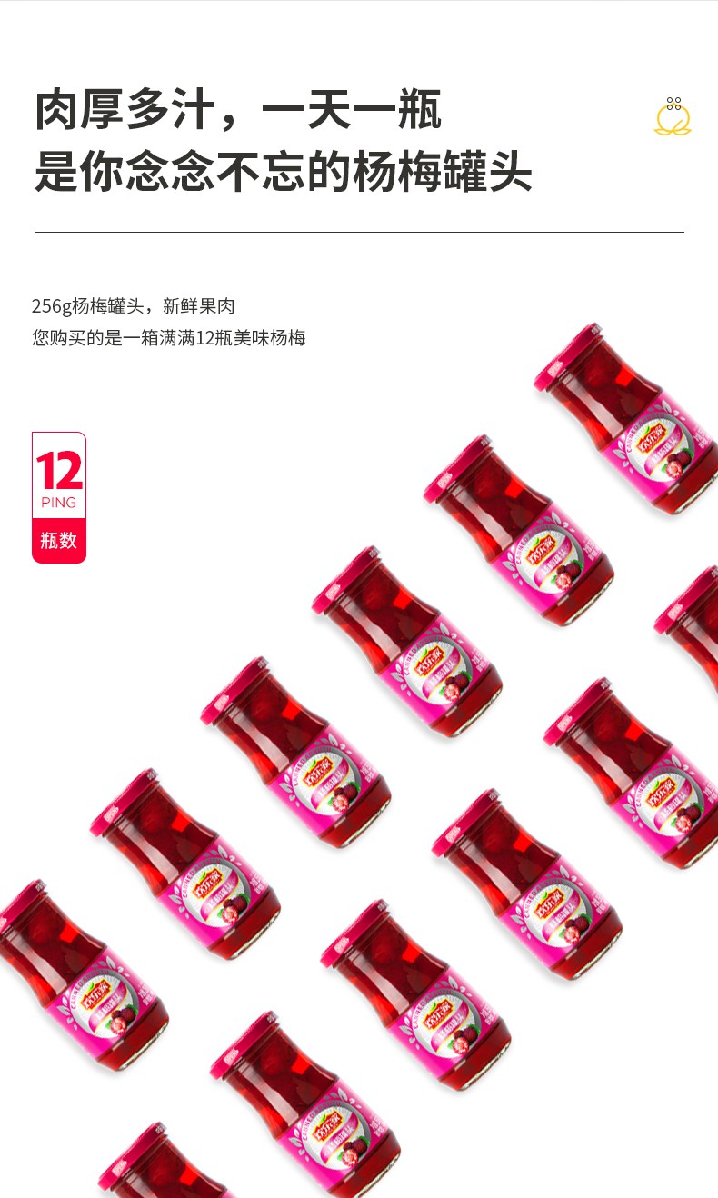 • 欢乐家 糖水杨梅罐头 256g*12瓶 整箱装休闲食品方便速食