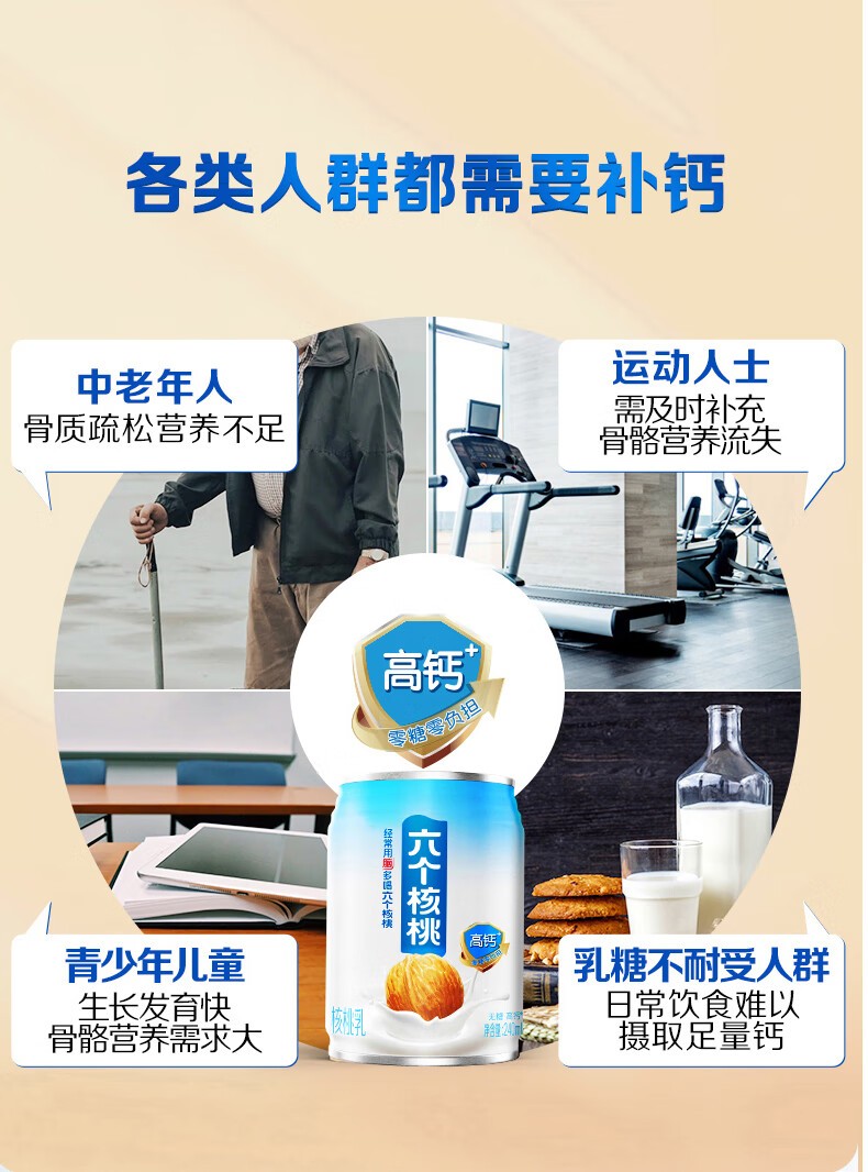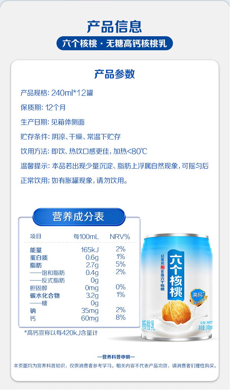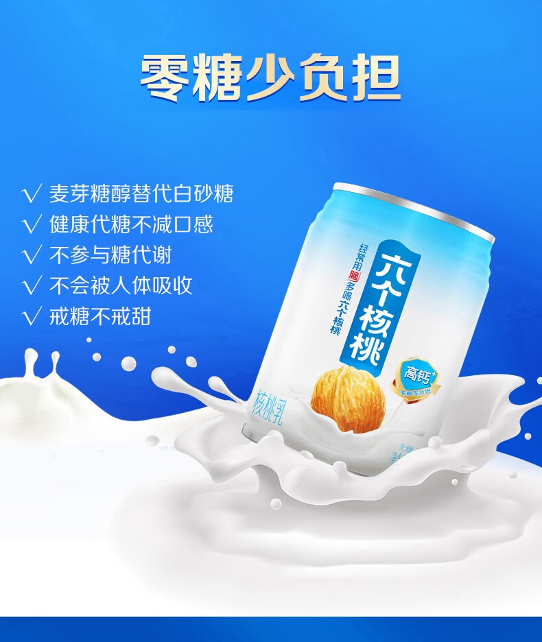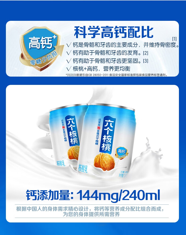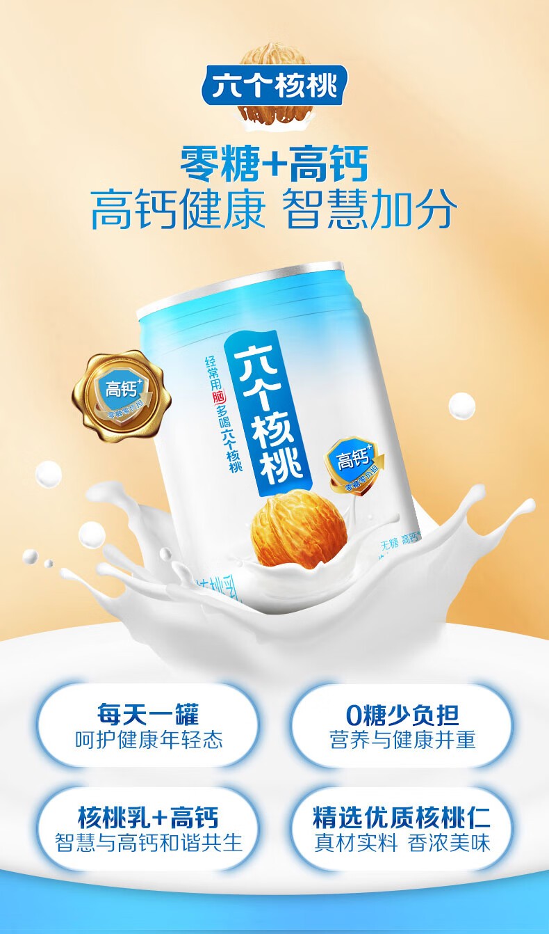 • 六个核桃 无糖高钙核桃乳 240ml*12罐 养元 整箱装植物蛋白饮料整箱装